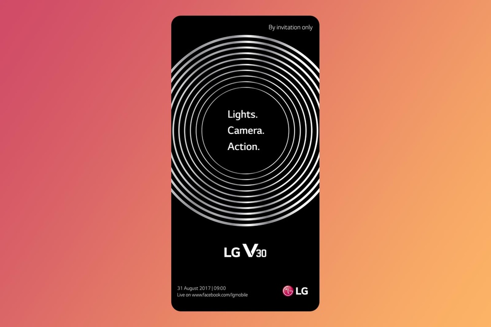 During the Google I/O 2017 developer conference it was actually confirmed that LG would be releasing a second flagship smartphone before the end of 2017 (the first being the LG G6 earlier this year). It was also announced that the new flagship from LG will be compatible with Google’s Daydream VR (virtual reality). The unveiling date of August 31 (tomorrow) has been provided via a teaser poster. The announcement will be held at the Consumer Electronics show IFA this year. The rumored LG V30 Plus will also be unveiled. The poster was then followed up by LG with another poster showing the words “By Invitation Only” and “Lights, Camera, Action”. The LG V30 name was also written on the invitational image. The event will begin at 09:00 Berlin time while being live-streamed to Facebook. The poster also shows how the texts and the design on the silhouette of the screen hits the absolute edge of the front display which could suggest that the V30 and V30 Plus will indeed have near-bezel-less display panels.